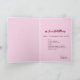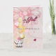 A folded baby girl shower invitation featuring a soft pink background, a decorative bow, and a cute elephant illustration with balloons. The design blends playful elements with a gentle, elegant layout. Fully customizable with event details, making it perfect for baby showers, celebrations, and welcoming a new baby girl.