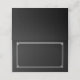 This folded name place card is shown in black with a classic white border frame.