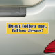 Hell, um Aufmerksamkeit zu bekommen, sagt dieser Autoaufkleber, Folge mir nicht, Folge Jesus!