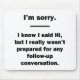Für den Sarkasmusliebhaber in uns allen. Karo aus diesem witzigen "Ich weiß, ich habe gesagt Hallo, aber ich war wirklich nicht vorbereitet für irgendein Follow-up Conversation" Design auf Bekleidung und Geschenke.