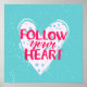 Folgen Sie Ihrem Herzen - moderne Kalligrafie Phrase handgeschrieben auf weißem Herz-Form Hintergrund mit Grunge Textur. Vector-Card-Design mit grober Typografie | Bigstock® - Alle Rechte vorbehalten.