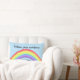 Folgen Sie Ihrem Regenbogen ist ein inspirierendes und hübsches Himmelblau-Kissen mit einem Regenbogen, das mit Ihrem Namen personalisiert sein kann. Es ist perfekt für ein Kinderzimmer.