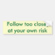 Folgen Sie zu nah, an Ihrem eigenen Risiko, Autoaufkleber
