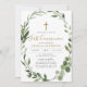 Die erste kommunion Einladung mit dem Aquarell Eukalyptus-Kranz lädt Sie mit unserem eleganten und modernen Grün Eukalyptus ein. Personalisieren Sie Ihre Veranstaltungsdetails in einem einfachen Layout und eleganten, handschriftlichen Schriftart.