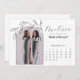 Diese Foto-Überbrückungskarte bietet ein minimales und modernes Design mit einem Bogen, der Ihr Bild mit Ihrer Brautjungfrau enthält. Und ein Kalender, in dem Sie ein Herz auf dem Datum mit einem Bleistift hinzufügen, um Ihre eigene Touch zu der Karte hinzuzufügen.
