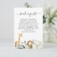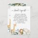 Foliage Safari Baby Shower Book Request Insert Sweet Safari Themen Babydusche Buchanfrage Einfügen mit vier niedlichen Safari-Tieren und einem grünen Blattwerk und einem schwarzen, modernen Kalligrafietext. Dieses Safari Baby Duschbuchpaket eignet sich ideal für eine geschlechtsneutrale Babydusche.