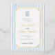 Geben Sie Ihren Hochzeitseinladungen mit echter Gold-, Silber- oder Roségoldfolie einen atemberaubenden Glanz! Diese zauberhafte Hochzeitseinladung zeigt einen echten, handgezeichneten Folienrahmen vor einem hellblauen gestreiften Hintergrund. Oben auf der Einladung befindet sich eine Illustration eines Diamantrings in einer Muschelringbox im Doodle-Stil. Die Details folgen mit den Namen des Paares in charmanten, foliengeprägten Schriftzügen. Ideal für Sommer-, Italien-, Strand-, Yacht- und Küstenhochzeitsthemen. Die Karten zeigen auf der Rückseite ein Verlobungsfoto Ihrer Wahl. Bearbeiten Sie den Großteil der Formulierungen und Textfarben, um diese süße Hochzeitseinladung an Ihre Veranstaltung und Ihren persönlichen Stil anzupassen. Sehen Sie sich die auf dieser Seite verlinkte Kollektion für das komplette Hochzeitsset
