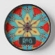 Sie können dem Schnittfliesen-Blumendesign mit seinen hellen, roten, himmelblauen und orangefarbenen Email-Glasfarben Initialen hinzufügen. Es wäre ein großartiges Geschenk für ein stilvolles Paar, das Zuhause eingerichtet hat. Oder Sie können einen kurzen Namen oder die Initialen eines Single oder einen anderen Kurztext eingeben.
