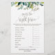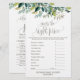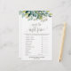 Dieses Laub-Spiel "Was ist in Ihrem Telefon" ist perfekt für eine rustikale Babydusche. Auf der Vorderseite der Spielekarte steht "raten Sie den richtigen Preis", auf der Rückseite der Karte steht "Was ist in Ihrem Handy?". Die Einrichtung besteht aus einem Hauch von grünen Blätter und grünen Botanicals. Personalisieren Sie die Vorderseite der Karte mit dem Namen des Mama-to-be- und Baby-Duschdatums. Sie können die Fragen des Spiels personalisieren, indem Sie auf den Button "Anpassen" klicken.