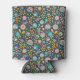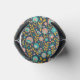 Dieses Folkloredesign weist ein rosa, orangefarbenes und aquamarines Blumenmuster auf dunkelblauem Hintergrund auf.