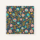 Dieses Folkloredesign weist ein rosa, orangefarbenes und aquamarines Blumenmuster auf dunkelblauem Hintergrund auf.
