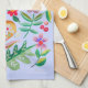 Ein gemütliches Küchentuch mit volkstümlicher Kunst, inspiriertes Design von Blume, Blätter und kleinen pastellblauen Kreaturen auf hellblauem Hintergrund. Dieses süße Blumen- und Tiermuster ist auf einem hochwertigen Küchentuch aufgedruckt. Das ist ein hübsches Geschenk für die Hauswärmung. Anpassbar in Ihrer Wahl der Hintergrundakzent Farbe.