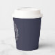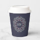 Mit unseren farbenfrohen Papiertassen fügen Sie Ihrem Feiertag einen festlichen Stil hinzu. Chic Ferien Design zeigt "JOY" in Elfenbeinbuchstaben, umrahmt von einer volkstümlichen Kranz-Illustration in Salbei Grün, Cranberry Rot und Elfenbein, Set vor einem schönen Mitternachtsblau Hintergrund.