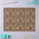 Dieses gemusterte Papiertaschentuch zeigt Ihnen Mottenbilder in modernem Volkskunststil. Die Motten sind in Rosa, Blau, Grün, Gelb und Bräune gehalten und bilden einen warmen und erdigen braunen Hintergrund.
