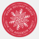 Winter holiday gift tags or envelope seals featuring a white, whimsical folk art snowflake and Customizable text "warm holiday wishes" on a red background.