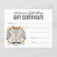Trendy designer painted flowers salon/beautician/retail shop gift certificate template for you to fill in with your own text and business logo. Great for hair salons, beauticians, cosmetologists, fashion designers, shop owners, spa owners, and any other business that wants their own custom printed gift certificates. Add your own business logo to the back to make it look extra professional and elegant.
