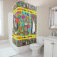 Folk Art Whimsical Style Cat und Blume Duschvorhang