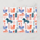 Ein buntes nordisches europäisches Folk Art Tierdesign. Dieses schöne schwedische Muster Postkarte ist eine wunderschöne rote, blaue, rosa und orange. Neben den Blumenelementen bietet es Kaninchen, Pony, Fuchs und Vögel.