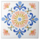 Eine quadratische Keramikfliese mit volkstümlichen botanischen Illustrationen. Jede Fliese zeigt ein symmetrisches Gartenmotiv – Lilien, wilde Beeren und wuchernde Ranken – in sanften Aquarelltönen. Das Kunstwerk ahmt eine handgemalte Glasur nach, mit beabsichtigten "ausgefransten" Kanten und einer subtilen rissigen Keramiktextur (Craquelé) für ein rustikales, traditionsbewusstes Gefühl.