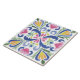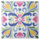 Ein quadratisches Keramikfliesen-Design mit volkstümlichen botanischen Illustrationen. Jede Fliese zeigt ein symmetrisches Gartenmotiv – Lilien, wilde Beeren und wuchernde Ranken – in weichen Aquarelltönen. Das Kunstwerk imitiert eine handbemalte Glasur mit beabsichtigten "ausgebluteten" Rändern und einer subtilen rissigen Keramiktextur (Craquelure) für ein rustikales, traditionsreiches Gefühl.