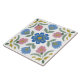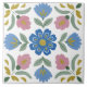 Ein quadratisches Keramikfliesen-Design mit volkstümlichen botanischen Illustrationen. Jede Fliese zeigt ein symmetrisches Gartenmotiv – Lilien, wilde Beeren und wuchernde Ranken – in weichen Aquarelltönen. Das Kunstwerk ahmt eine handgemalte Glasur nach, mit beabsichtigten "ausgefransten" Kanten und einer subtilen rissigen Keramiktextur (Kraquelée) für ein rustikales, traditionsbewusstes Gefühl.