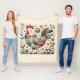 Folk Patchwork Rooster with Floral Accents Fleecedecke