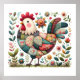 This delightful folk art rooster brings together the warmth of vintage quilting with the charm of country living. Crafted in a playful patchwork style, each feather is adorned with floral motifs, checkered textures, and retro-inspired patterns that evoke a cozy, handmade feel. Surrounded by blooming flowers and leafy sprigs, this whimsical animal design captures a sweet and cheerful essence, perfect for lovers of the country chic aesthetic. The soft color palette—featuring dusty reds, mint greens, buttery yellows, and warm corals—blends seamlessly with cozy cottagecore vibes and boho barnyard style. Ideal for those who appreciate colorful rural artwork with a touch of playful rustic charm, this piece radiates joy and nostalgia in every detail. AI generated artwork.