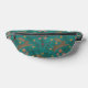 A whimsical pattern featuring leaping brown rabbits surrounded by yellow, pink, and red flowers, green leaves, and dotted accents on a teal background.
