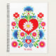 Stilisierte Mod- und Folksy-Bilder auf einem Planer. Behalt ein organisiertes und hübsches Büro. Volkskunde Nelken, Gänse, Blätter und Herzen für einen hübschen volkstümlichen Look auf schneeweißem Hintergrund. Hinzufügen einer benutzerdefinierten Nachricht oder Stimmung - optional.