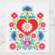 Stilisierte Mod- und Folksy-Bilder auf einem Weinlabel. Feiern Sie Ihren Urlaub oder Ihre täglichen Feierlichkeiten. Folktische Nelken werden von Gänseblümchen, Laub und Herz für einen hübschen volkstümlichen Look auf schneeweißem Hintergrund ergänzt.