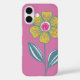 Verlieren Sie nie wieder Ihr iPhone mit diesem hellen und farbenfrohen Cover. Eine große illustrierte Blume vor einem rosa Hintergrund macht eine Aussage und wird leicht zu erkennen sein.
