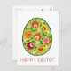 Happy Osterpostkarte mit grünem Osterei mit Folklore-Motiv. Design inspiriert von polnischem Folkart aus der Region Lowicz. Der Text auf der Rückseite ist vollständig anpassbar. Alles, was Sie brauchen, ist, am Ende zu unterschreiben und eine einzigartige Geburtstagskarte ist bereit, jemanden zum Lächeln zu bringen.
