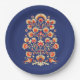 💙 🧡 Folklore mit gelben Blumen und Vögeln Pappteller