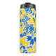 Folklore-Muster mit ukrainischen Flaggenfarben Thermosbecher