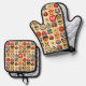 Folter Retro Floral - Personalisiertes Monogramm Ofenhandschuh & Topflappen-Set
