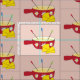 Ein lustiges Gewebe mit dem Muster eines Fondue Topfes und zwei Stück Schweizer Käse .