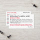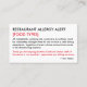 Food Allergy Restaurant & ICE Card Telefonnummerkarte