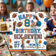 The bold athletic typography reads "Happy 8th Birthday, Six Seven!" in a classic varsity style. These napkins add a professional, custom touch to any sports-themed party table. Easily customize the name, age, and jersey number to create a one-of-a-kind keepsake for your little MVP's big day!