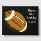 Dieses großartige Party-Geburtstagskorb bietet einen braunen und weißen Fußball, der durch die Luft fliegt. Personalisieren Sie einfach den Text für einen speziellen Sportfan oder entfernen Sie ihn ganz.