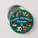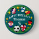 Ein farbenfroher Knopf mit sportlichen Shirts, Fußbällen und Sternen. Ändern Sie den Text nach Ihren Bedürfnissen in Anzug.