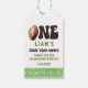 This fun first birthday party collection features a football first year down theme. The title text is a groovy retro 70s font with a watercolor football. The bottom border is a watercolor football yard line.