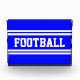 Dieses sportliche Design zeichnet sich durch fett athletischen FOOTBALL-Text in breiten weißen Rennstreifen gegen leuchtend königsblauen Hintergrund aus.