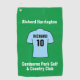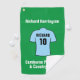 Erstellen Sie ein Golf-Handtuch mit Ihrer Wahl des Fußball-Shirts mit einem zusätzlichen Namen und Nummer. Fügen Sie auch den Namen des Golfers und den Namen des Golfklubs hinzu. Light Blue oder Sky Blue Football Shirt.