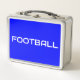FOOTBALL Sleek White Text on Bright Vivid Blue Metall Brotdose