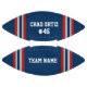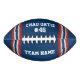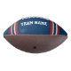 Red, white, and blue football jersey stripes, personalized with your athlete's name, player number, and team name.