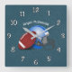 Eine großartige Uhr für alle Fußballfans - jung oder alt. Das Design ist mit einem Fußball und einem Helm für Spieler auf einem ozeanblauen, texturierten Hintergrund mit Platzhalter für einen Namen. Der Namenstext kann durch Verwendung der Vorlage leicht geändert werden. Wählen Sie für andere gewünschte Änderungen (Schriftart, Farbe, Größe oder Platzierung) "Diese Vorlage personalisieren" aus, und wählen Sie dann "Bearbeiten mit dem Entwurfstool". Verwenden Sie auch das Design-Tool, wenn Sie die Größe des Fußballs und des Helmbildes ändern möchten. Karo auf der rechten Seite für verschiedene Uhrenstile und für eine andere Farbe der Uhrenhand (schwarz oder grau). Hinweis: Dieses Design passt auch gut zu einer Armbanduhr (eWatch). Scrollen Sie zum Abschnitt "Design auf ein Produkt übertragen".