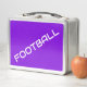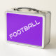 FOOTBALL White Text Royal Lila Hintergrund Metall Brotdose