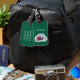 A quality luggage tag that expresses your interest in the sport of Football. The design features an artistic rendering of a football next to a player's helmet highlighted in white on a dark background. This with a last name (or other text) goes on one side. On the other side is your complete name and address. All text is easily changed by using the template. Selecting “Personalize this design” offers you several edit options to easily change the text (wording, plus type font, color, size, position) and to possibly edit the design elements. You may also want to scroll down to the section “Transfer design to a product” for a few suggestions about other items this design can be used on.