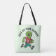 Diese lustige und sonderbare Tasche enthält eine spielerische Alien, die mit einem Grillfußball unter seinem Arm läuft, gepaart mit dem kühlen Satz "Out of this League". Diese Tasche ist perfekt für Sportbegeisterte und Alien-Fans geeignet und ist für alle geeignet, die Spaß und Stil miteinander verbinden.