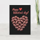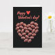 This card features a heart shape built from many tiny American footballs, arranged evenly like a careful mosaic against a deep black background 🥰. Each football is reddish-brown with bright white laces, and soft shading along the curved sides makes them look rounded and touchable. The heart feels like a sweet nod to someone who loves the game, as if two people are sharing a quiet grin over an inside joke ❤️. Near the top, the text “Happy Valentine’s day!” sits centered in coral red, standing out clearly against the dark space. Right beside the words is a small solid red heart icon that echoes the bigger football heart below. The wide black area around the design keeps the focus on the heart and the message, giving the layout a calm, modern look. The football heart sits in the lower half of the front, with the laces and highlights repeating in neat rows to form a crisp, symmetrical outline.